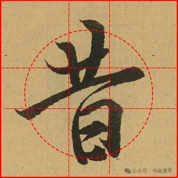 这是由启功先生发明的黄金律练字法,仔细观察会发现其中每个字的重心点在哪,相比于普通九宫格,中心会较为紧凑。然后下面的格子是在其基础上增加一个圆形虚线,便于初学者掌握字形大小而临习。